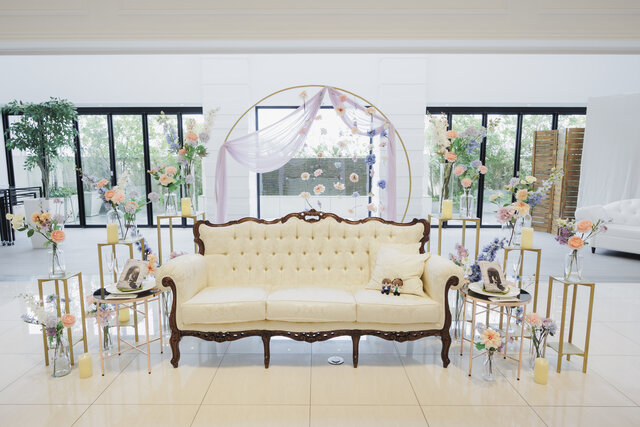 衣裳に合わせたり、お好みの色味や花材で作る事のできる会場装飾!