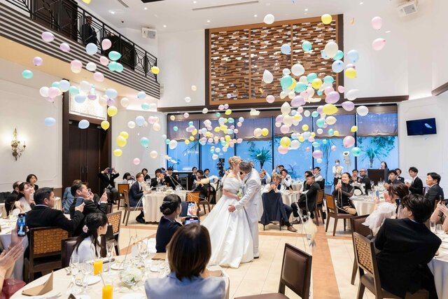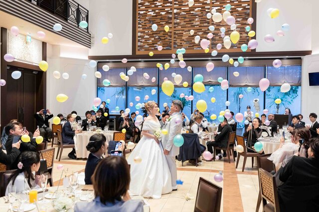 本日はアルカンシエルluxe mariage大阪で実際に挙げられた方のバルーンを使ったドラマチックな演出をご紹介させていただきます。