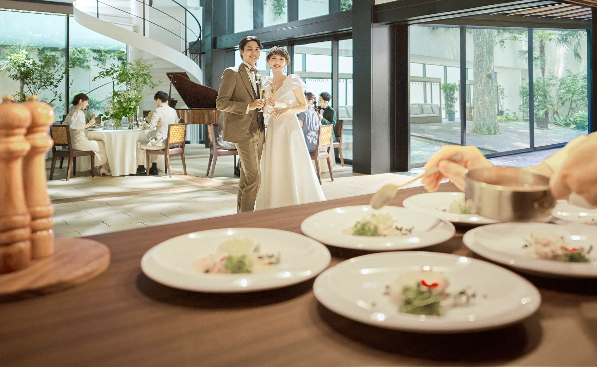 料理はおもてなしの要です。できたて料理を提供できるようオープンキッチンを設けました。お肉を焼く香りや迫力あるフランベでゲストを楽しませることができます。